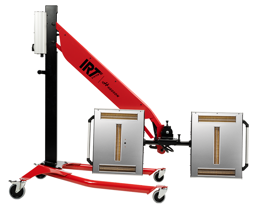 Next-generation mobile infrared dryer designed for fast, precise curing in automotive paint preparation and refinishing with laser distance guide and pyrometer (LDP).