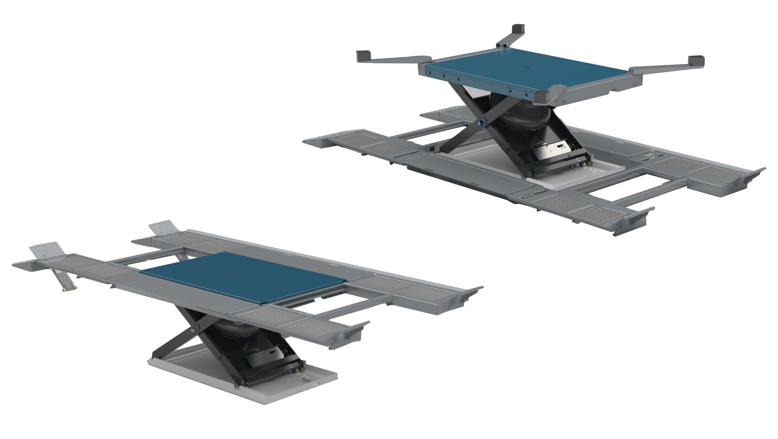 Pneumatic Herkules lift with DUO arms and Pro ramps, 2,8t lifting capacity, 100 cm lifting height, in ground with CE-Stop